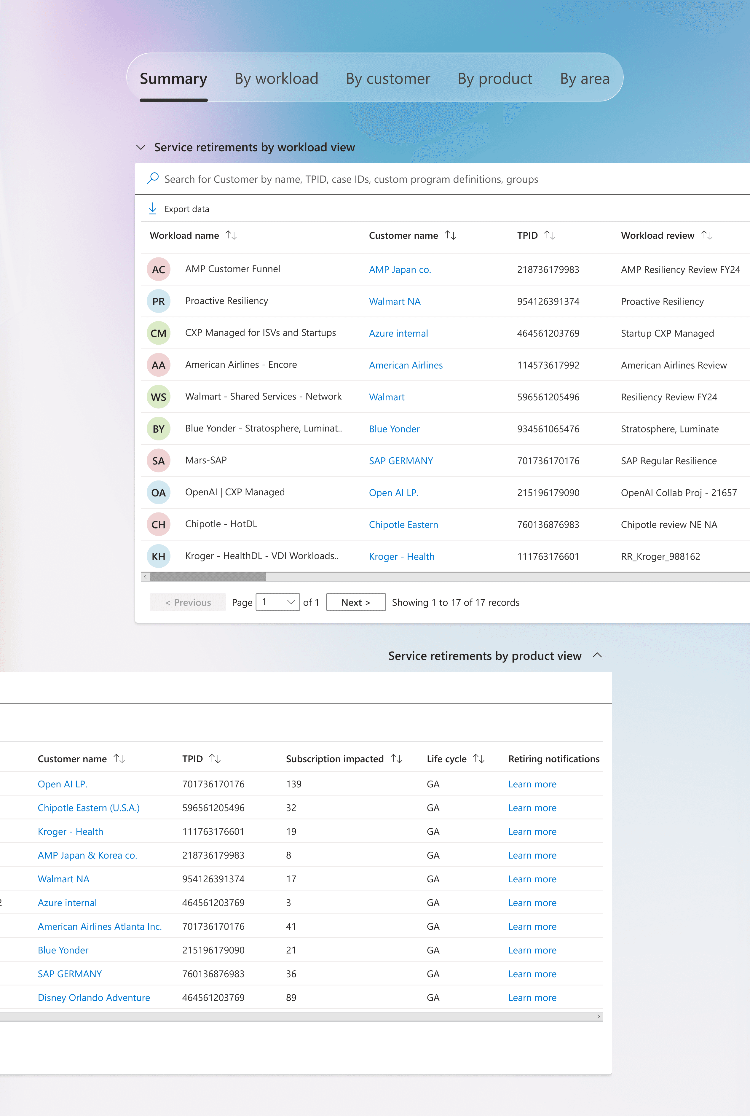 I designed a centralized Service Retirement Dashboard that consolidates data from multiple sources and provides tailored views for different stakeholders. The platform enables teams to anticipate service impacts, coordinate mitigation strategies, and make more informed planning decisions.